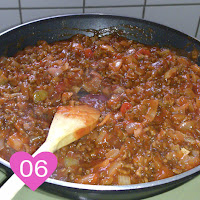 04} Daarna doe je de HELFT van ALLE pastasaus erbij.